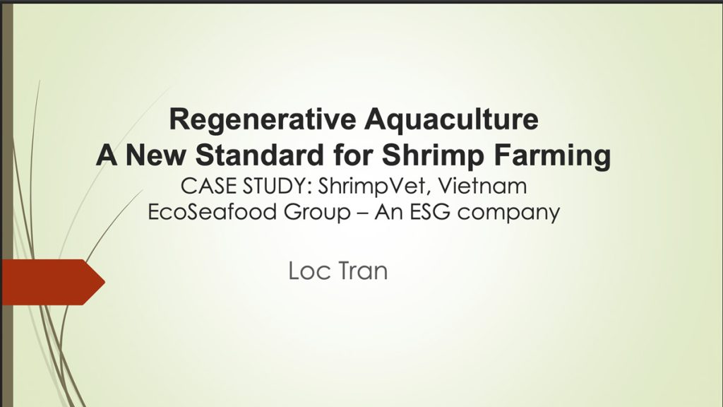 This session offered a look at the future of shrimp farming. While “sustainable” technologies aim to avoid deterioration of the environment, “regenerative and restorative” systems aim to improve the environment. Foresee the future by learning about advances in water reuse, regenerative power, carbon sequestration, and polyculture of secondary crops.